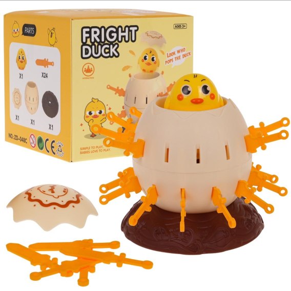 Gra zręcznościowa Skacząca Kaczka dla dzieci od 3-go roku życia. Zabawna gra polega na umiejscowieniu jajka z kaczką w środku na podstawce i naciśnięciu mechanizmu. Następnie każdy z graczy otrzymuje miecze i wkłada je po kolei w otwory na jajku. Należy uważać, żeby nie ugodzić kaczki znajdującej się w jajku. W przeciwnym razie wyskoczy z jajka niczym z procy. Wygrywa osoba, która jako pierwsza włoży w jajko wszystkie swoje miecze lub więcej niż przeciwnik, zanim kaczka wyskoczy.