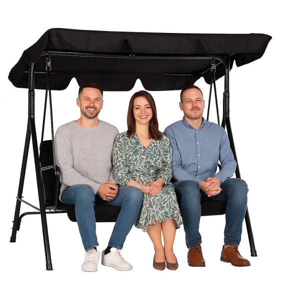 HUŚTAWKA TRZYOSOBOWA OGRODOWA BUJANA MATERAC CZARNA