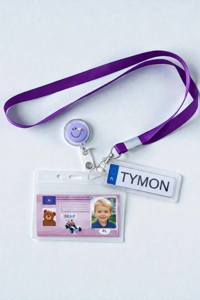 PRAWO JAZDY MAŁEGO KIEROWCY + SMYCZ z zawijakiem + brelok z imieniem DZIECKA • bezpieczny identyfikator