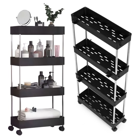 Dzięki 4 półkom, regał oferuje dużą przestrzeń do przechowywania różnorodnych akcesoriów łazienkowych, od kosmetyków po ręczniki czy artykuły higieny.